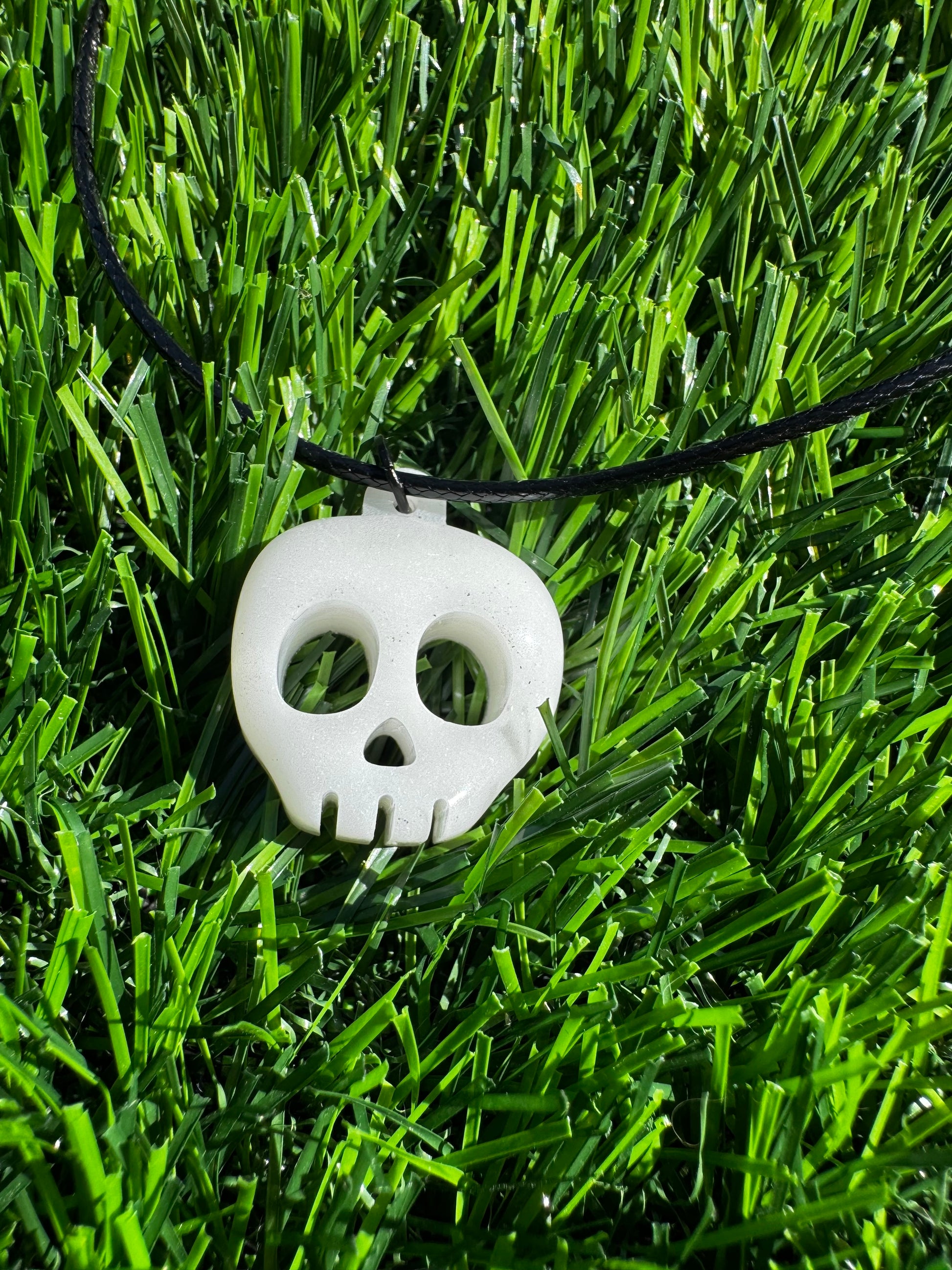 Hand-crafted resin skull pendants that blend cute and creepy in the most perfect way. Each pendant is individually poured, sanded, and sealed, making every skull unique in color, texture, and shine. Hung on a black cord with a silver clasp, this necklace adds a playful edge to any outfit, from casual streetwear to spooky season fits.